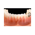 Versorgung der Lücke mit einer Brücke, die mehrflächig verblendet ist. Metallanteile sind sichtbar, aber weniger als bei der o.g. Lösung.