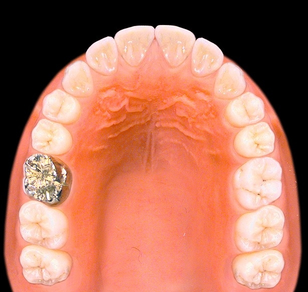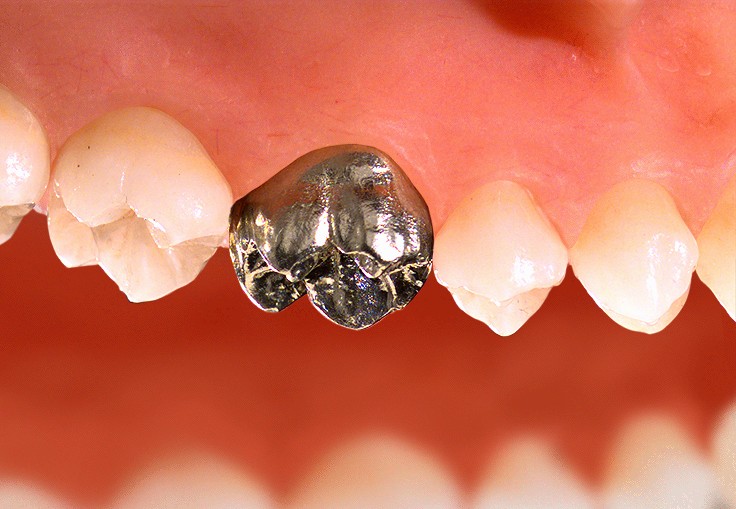 Versorgung des defekten Zahnes nach der Regelversorgung mit einer Metallkrone. Hier können verschiedene Legierungen verwendet werden.