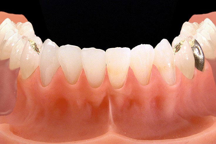 Die defekten Zähne wurden mit Kronen, die ein Geschiebeanteil eingearbeitet bekammen versorgt.