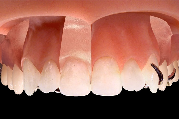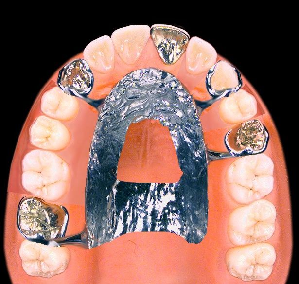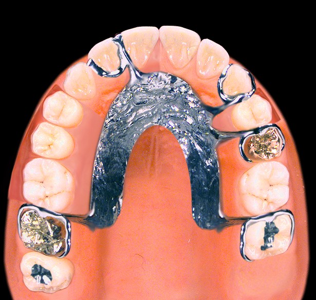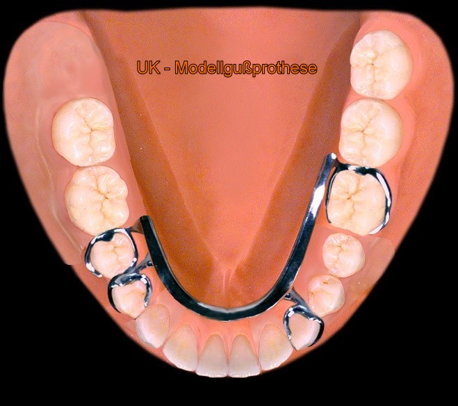 Bei Fehlen der hinteren Backenzähne ist die Versorgung mit einer festsitzenden Brücke nicht mehr möglich. Die Ausdehnung der Basisplatte der Modellgußprothese und die Zahl der Halteelemente richtet sich nach der Anzahl der fehlenden Zähne. Im Oberkiefer bedeckt die Prothesenbasis den Gaumen und im Unterkiefer die Region hinter den Frontzähnen.