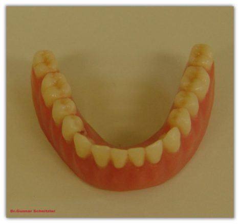 Die fertige Prothese im Unterkiefer in der Draufsicht.