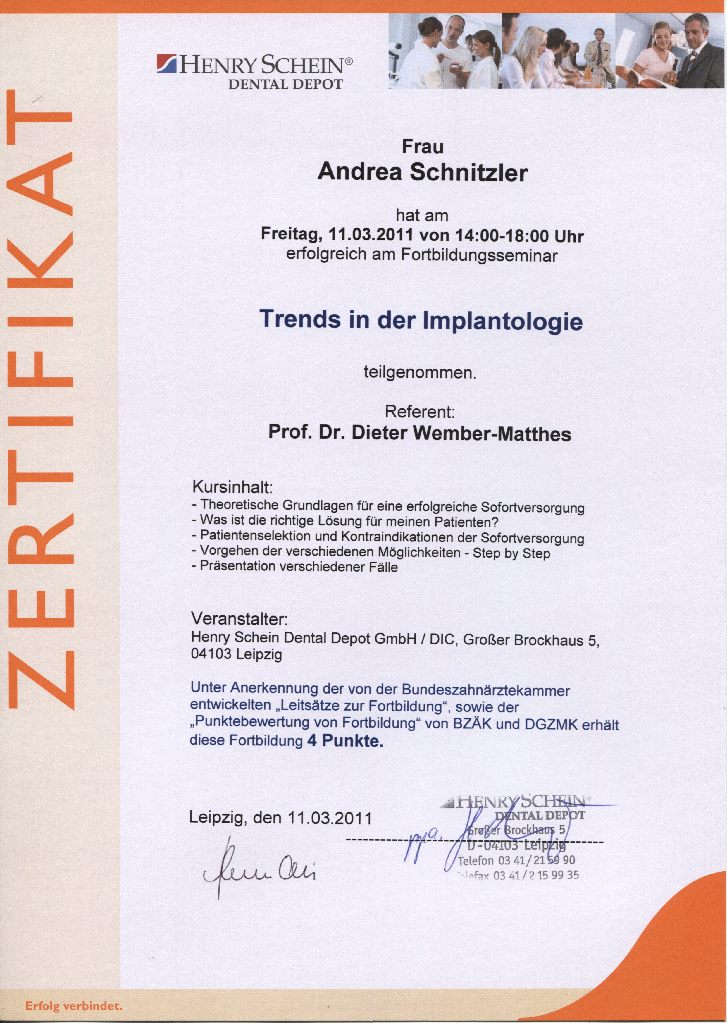 Zertifikate A. Schnitzler