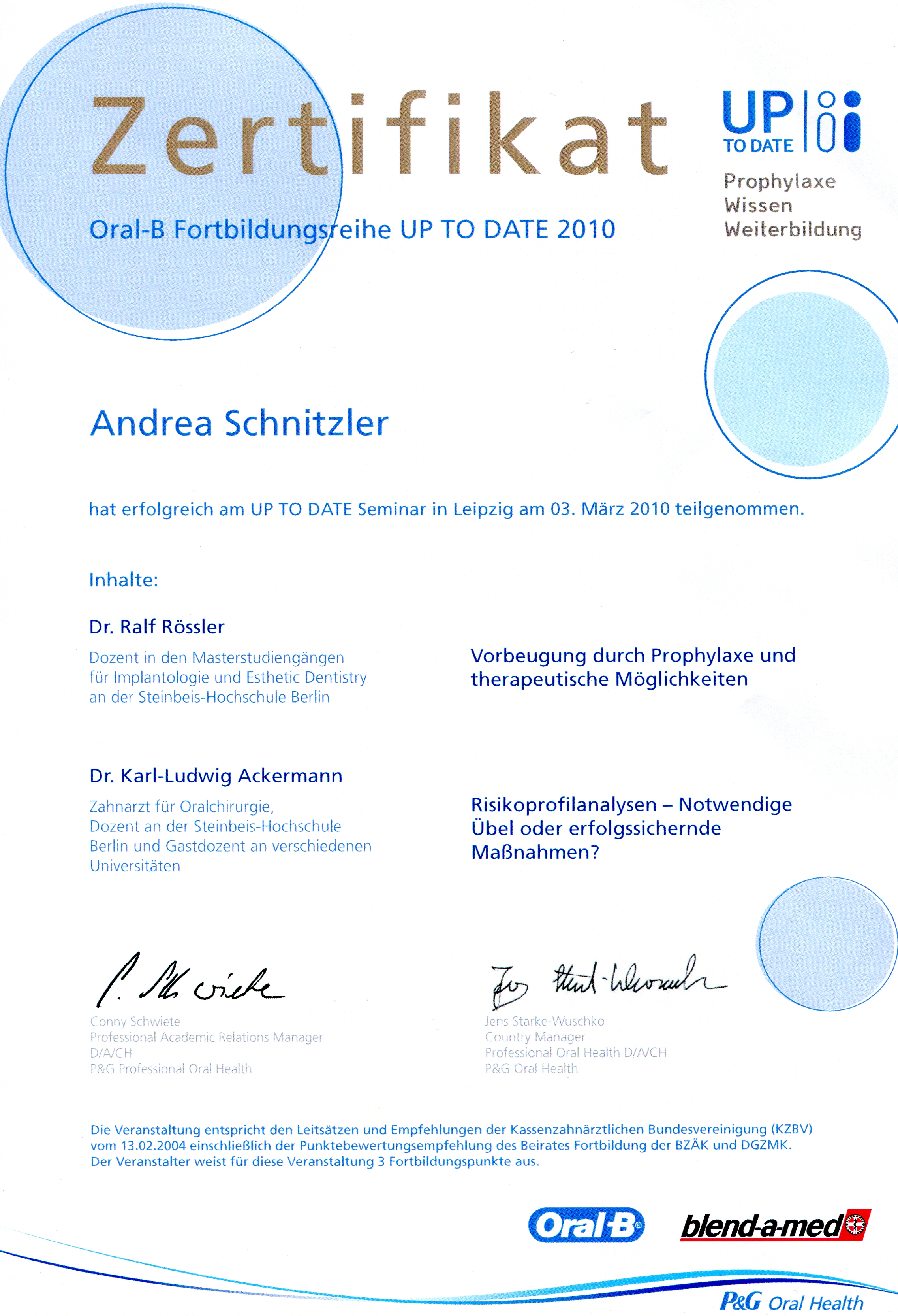 Oral-B Fortbildungsreihe uptodate 2010